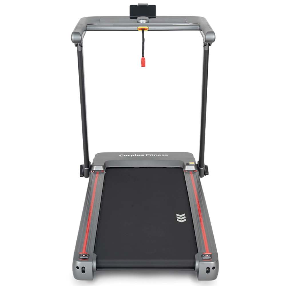 La Corplus C#Ripple combina rendimiento, tecnología y practicidad para que disfrutes de un entrenamiento completo en la comodidad de tu casa. Su motor DC de 2.5 HPP( 1.5 HP) ofrece una marcha suave y silenciosa, alcanzando velocidades de hasta 16 km/h, ideal tanto para caminatas como para sesiones de running más exigentes. La inclinación automática en 12 niveles te permite variar la intensidad y simular distintos terrenos, mientras que su superficie de carrera de 46 x 130 cm brinda espacio y estabilidad en cada paso. Con 15 programas preestablecidos y la posibilidad de conectarla por Bluetooth a distintas aplicaciones de entrenamiento, la experiencia se adapta a tus objetivos y te mantiene motivado. Además, su diseño plegable y súper compacto la hace perfecta para optimizar el espacio en tu hogar, sin renunciar a la comodidad de un equipo profesional. Apta para usuarios de hasta 110 kg, la Corplus C#Ripple es una aliada confiable para mantenerte activo, fuerte y en movimiento. Potente, versátil y práctica — tu entrenamiento diario empieza en casa.