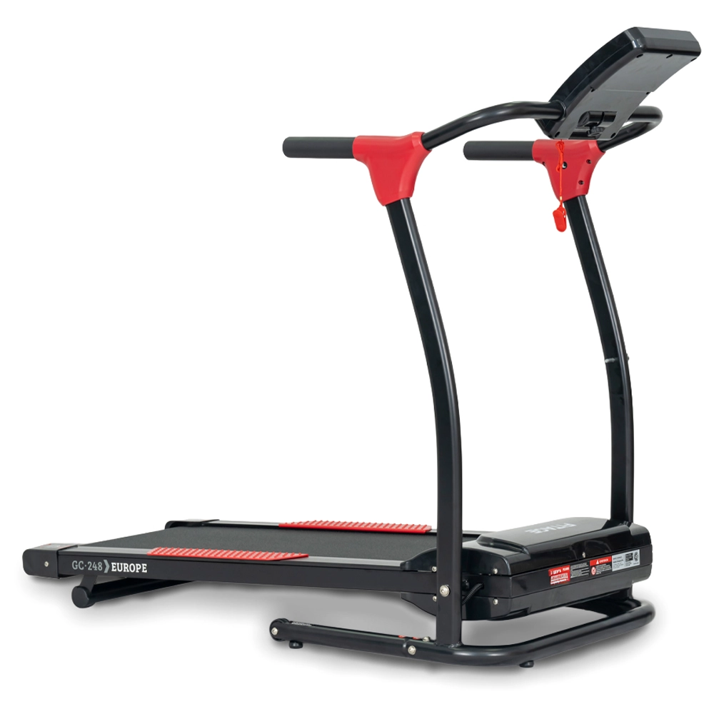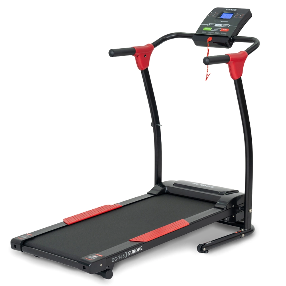 Una cinta especialmente diseñada para caminar y trotar en casa. De rendimiento sensible y fluido gracias a la tecnología Integrada Fitage™. Es plegable y tiene 2 niveles de inclinación. Cuenta con el sistema de amortiguación SoftWalk que permite un andar natural. Soporta un peso máximo de usuario de 100 kg. Su superficie es NON-SLIP, que brinda la función de ser antideslizante. El motor tiene una potencia real 2.5hpp con carga incluida (equivale a 1.5HP) en uso continuo. 12 programas incorporados. Display led que informa: tiempo, distancia, velocidad y calorías. Superficie: 100 x 40 cm. Llave de seguridad. Ruedas de traslado.